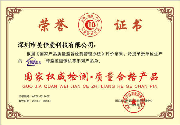 國家權威檢測 質量合格產品證書副本
